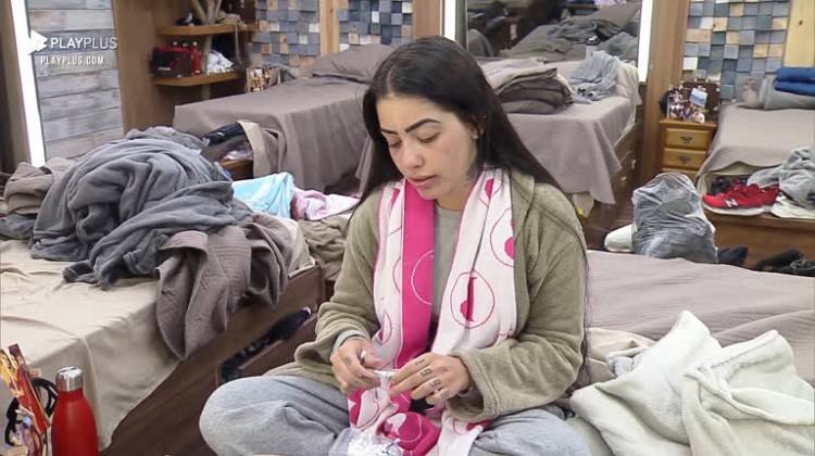 A cantora MC Mirella acordou agitada nessa terça-feria (22). Após fazer uma faxina na sede , ela desabafou à Tays Reis sobre seu ex-namorado: \"Saudade do Dinho\". .